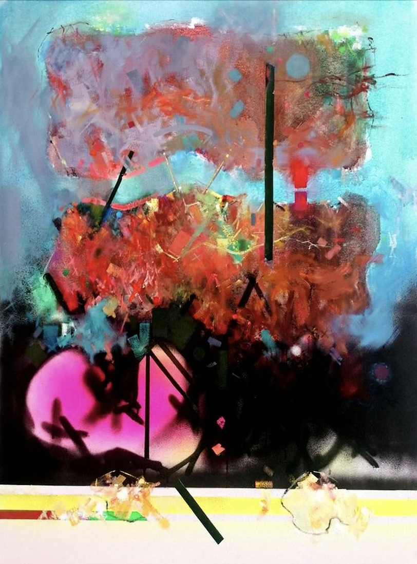 The expressionistic works reveal a synthesis of classical oil techniques and modern abstraction, combining meticulous Old Master layering with luminous color and tactile depth.